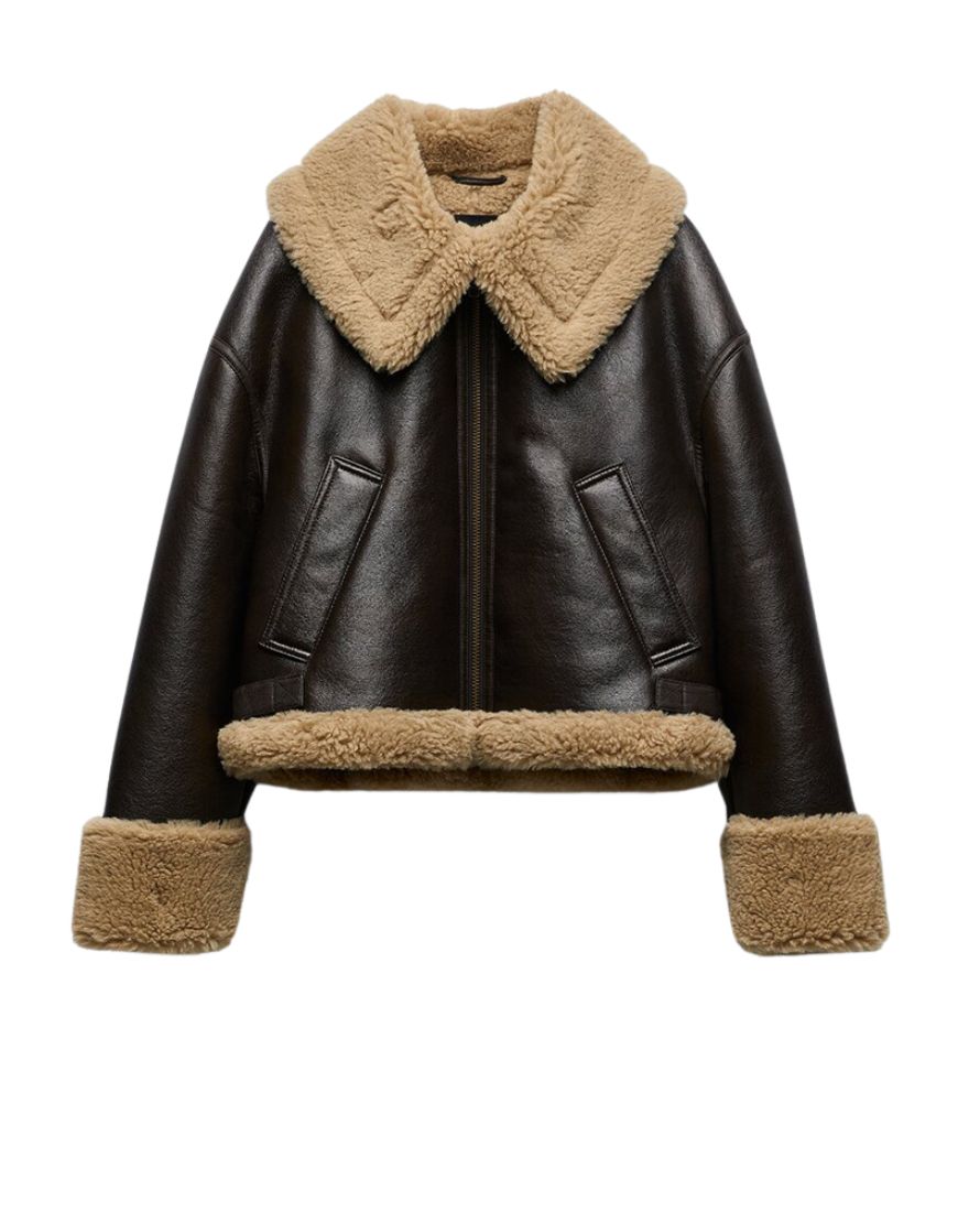 Absolutely love this shearling leather jacket! The lambskin is soft, and the lining is so warm. Perfect for adding style to any cold-weather outfit.