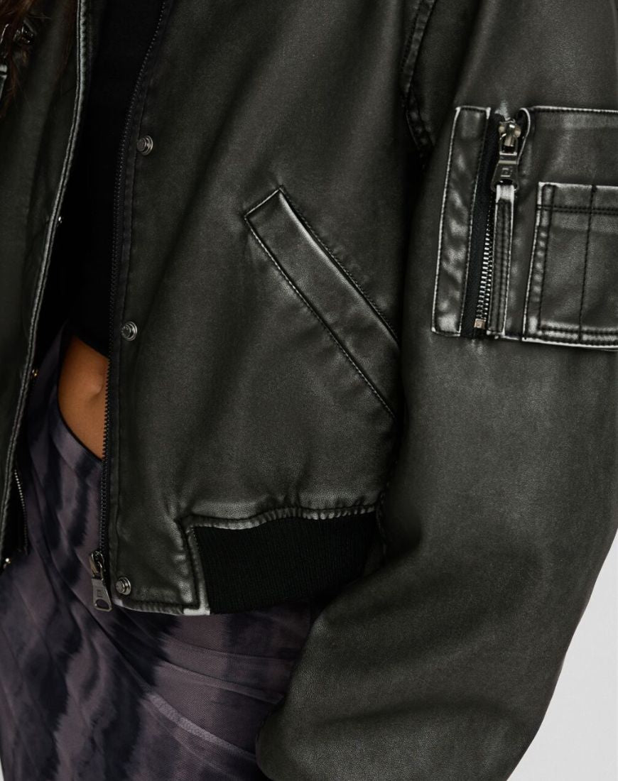 The perfect leather bomber jacket! The lambskin is buttery soft, and the fit is flattering without being too tight. Its warm enough for cold weather and stylish enough to wear everywhere. A great buy!