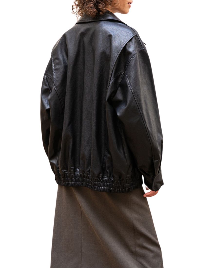 Im obsessed with this jacket! The oversized look is trendy, and the leather is buttery soft. Its warm without being bulky, and it goes well with almost everything in my wardrobe. Highly recommend!
